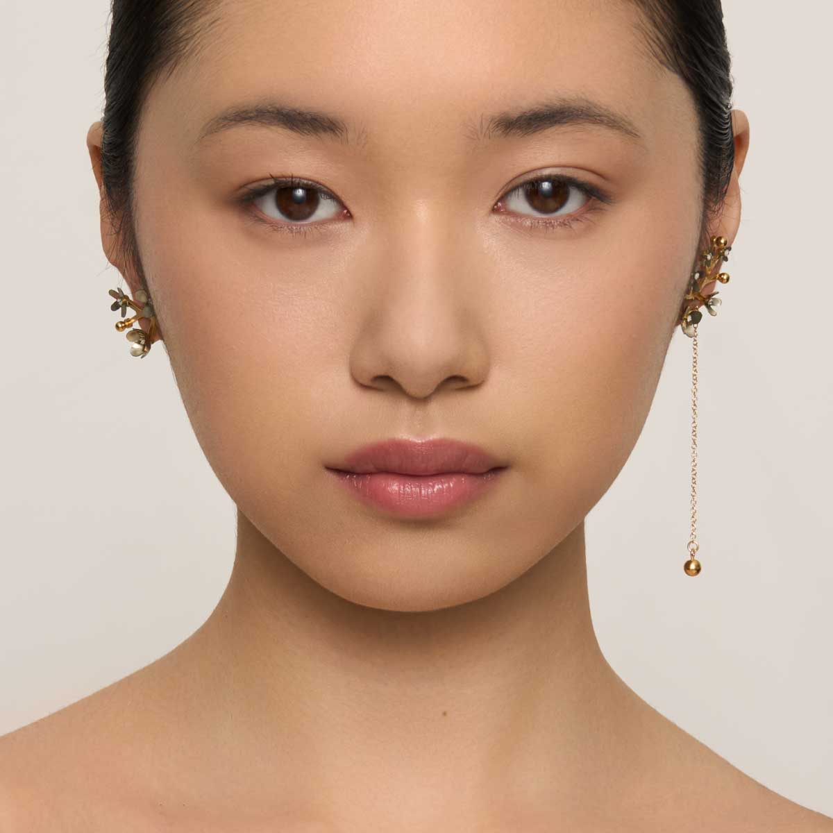 Asymetryczne kolczyki z jasnymi kwiatami wiśni z kolekcji Plantis