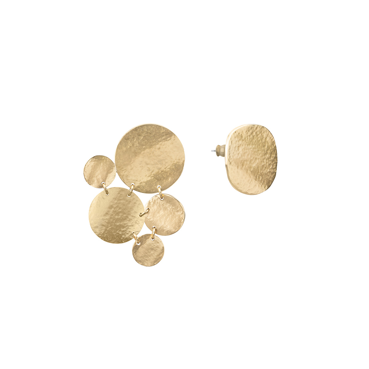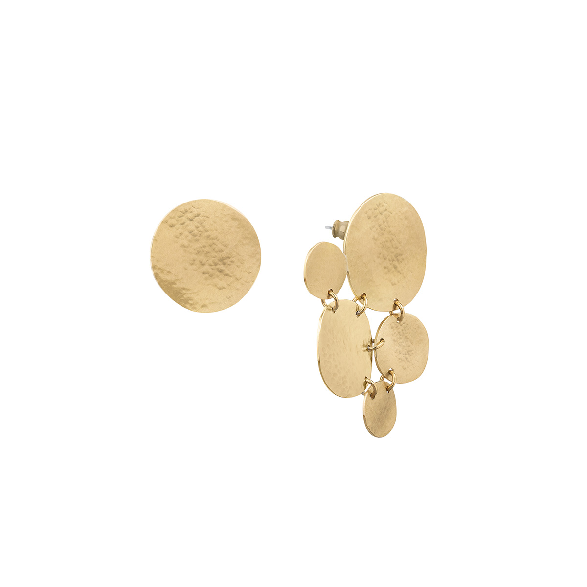 Asymetryczne, pozłacane kolczyki z kolekcji Rundo