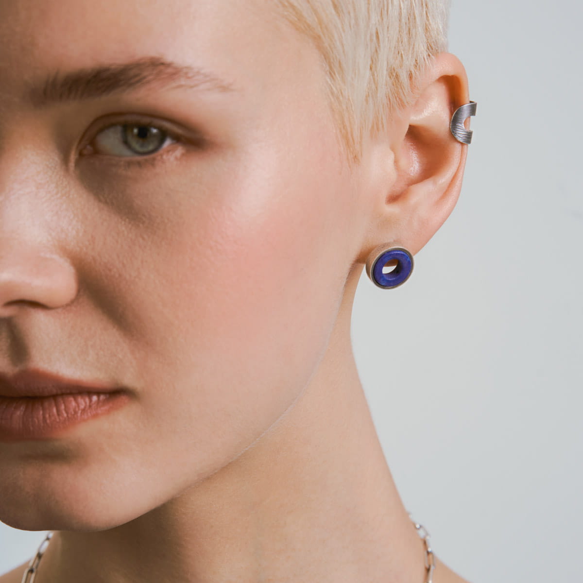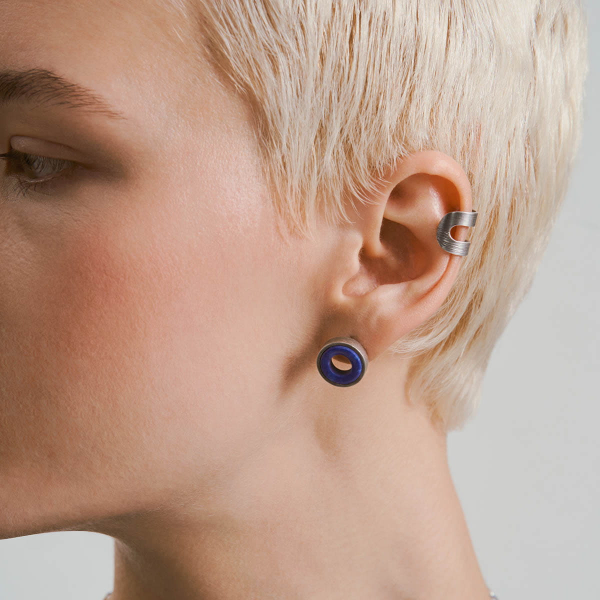 Nausznica z kolekcji Orini została wykonana ręcznie ze srebra próby 925 w naszym warsztacie jubilerskim. Kształt nausznicy delikatnie oplata ucho, podkreślając jego naturalną linię, podczas gdy szczotkowane wykończenie kontrastuje z gładkimi powierzchniami, tworząc dynamiczną grę tekstur. Między dwa liniami nausznica posiada przerwę. Wycięcie dodaje jeh lekkości i oryginalności. Nausznicę łatwo zestawisz ze srebrnymi kolczyki z lapis lazuli z tej samej kolekcji, tworząc spójny, a zarazem niebanalny zestaw na uchu.