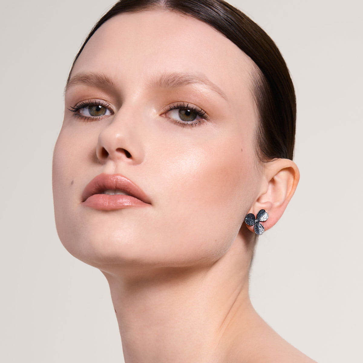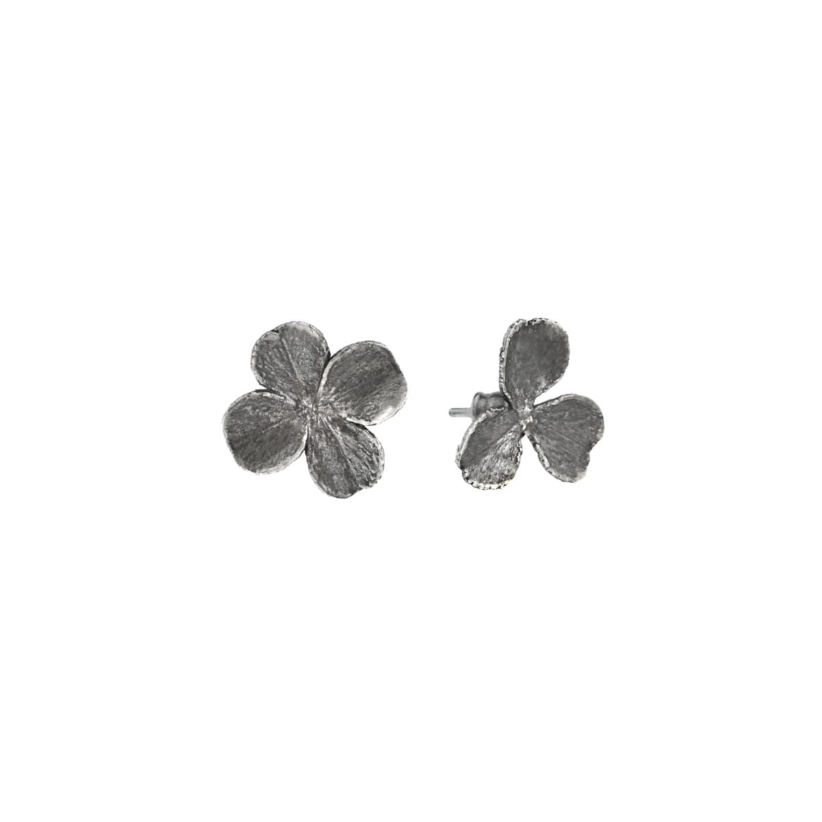 Kolczyki z motywem koniczyny zostały wykonane ręcznie ze srebra, a następnie oksydowane, co nadało im grafitowy kolor. Każdy listek tej niezwykłej rośliny niesie inne dobrodziejstwo – wiarę, nadzieję, miłość i szczęście. Z tego powodu oryginalna biżuteria będzie idealnym podarunkiem dla życzliwej osoby. Delikatne kolczyki mają lekką, lecz wyrazistą formę. Jeden jest w kształcie koniczyny z trzema listkami, drugi z czterema. Prosty lecz interesujący design czyni je idealnym dodatkiem na co dzień.