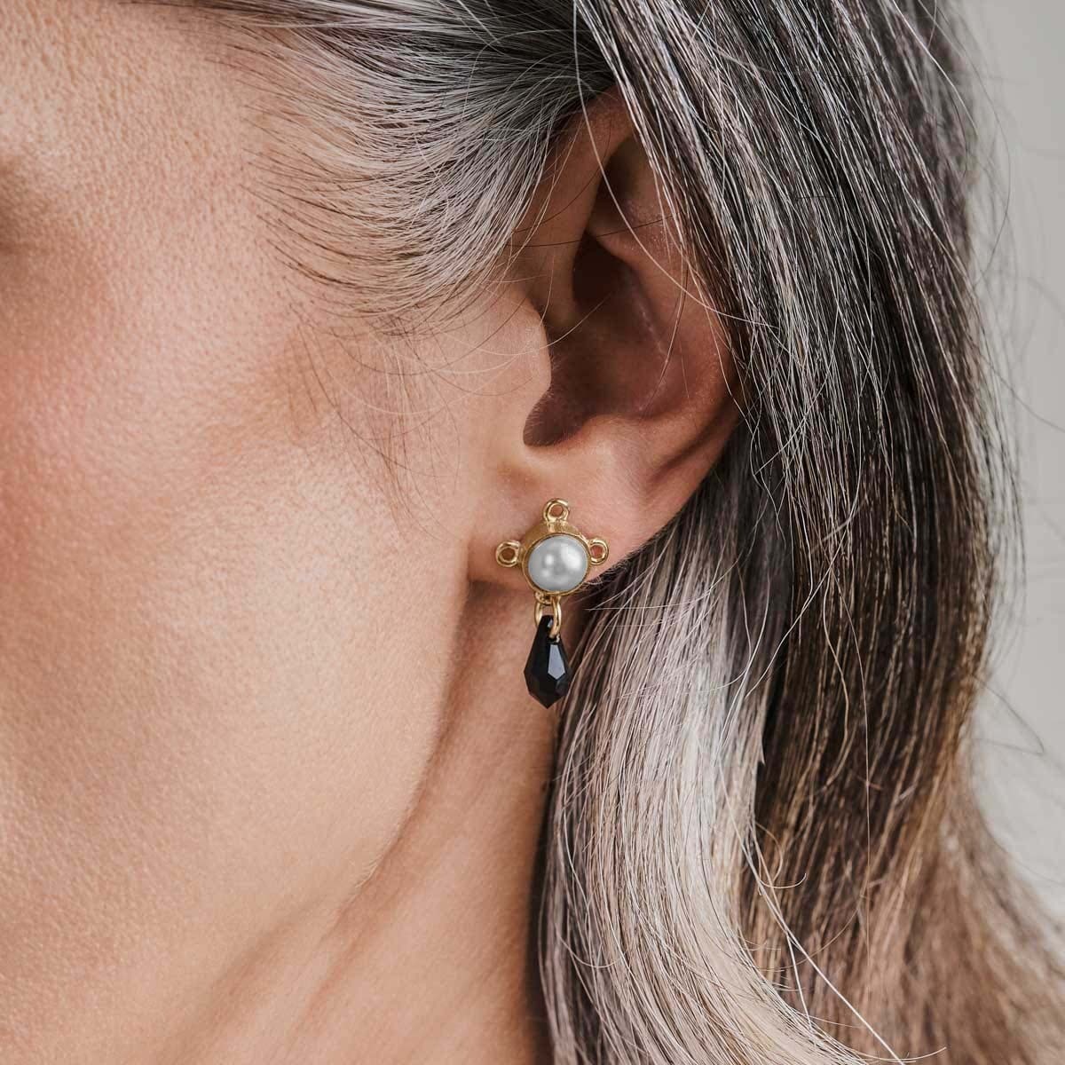 Złote kolczyki z perełkami i kryształami z kolekcji Soda