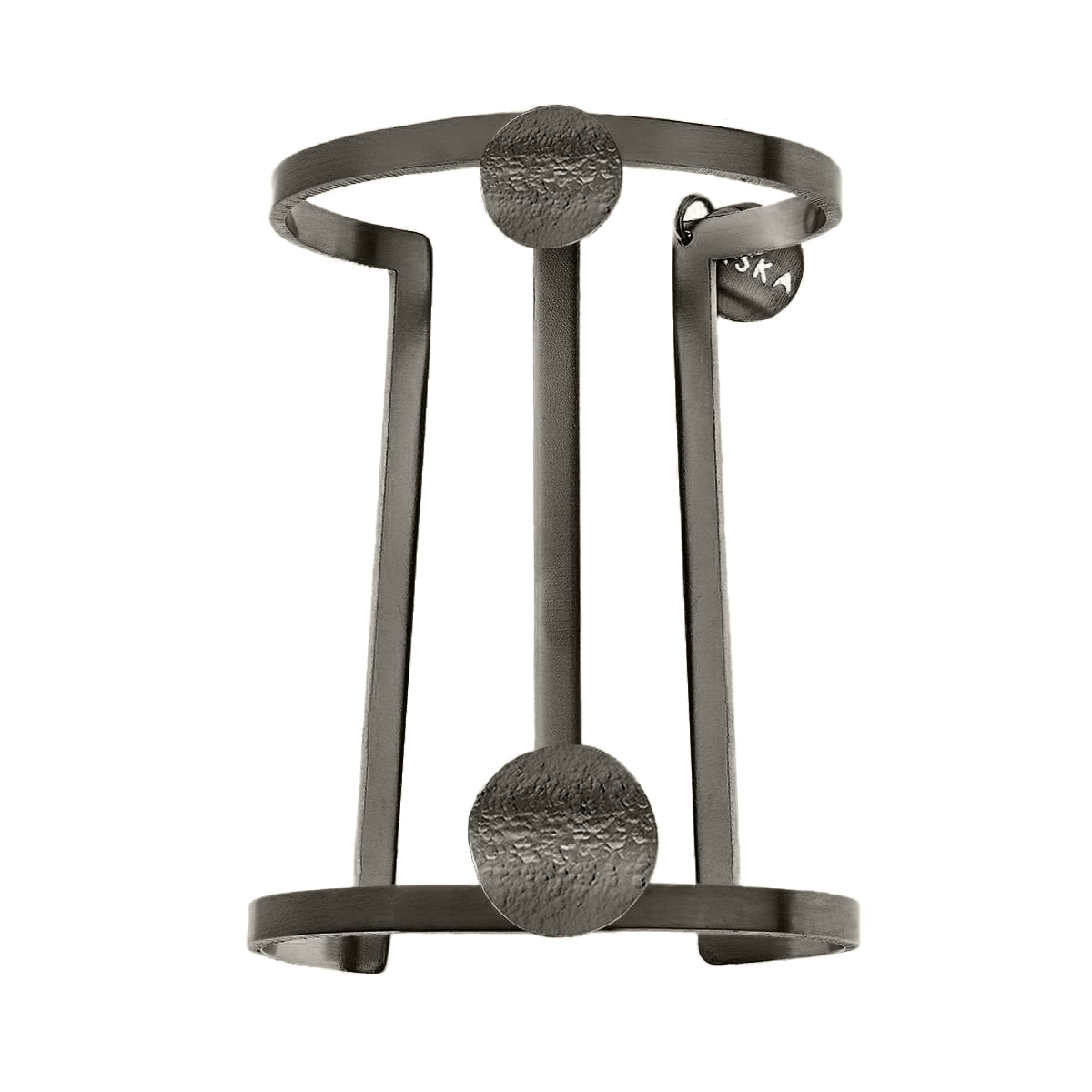 Kolekcja Rundo powstała pod wpływem wrażeń płynących z licznych morskich doświadczeń projektantki Anny Orskiej. Efektowna, sztywna bransoletka została wykonana ręcznie z mosiądzu. Na sztywnej mosiężnej oprawie umieszczono dwa koła, które nieprzypadkowo kształtem i fakturą przypominają niespokojną toń morską. Dzięki uniwersalnemu charakterowi i eleganckiej formie artystyczna bransoletka będzie świetnym uzupełnieniem wielu kreacji zarówno codziennych jak i wieczorowych.