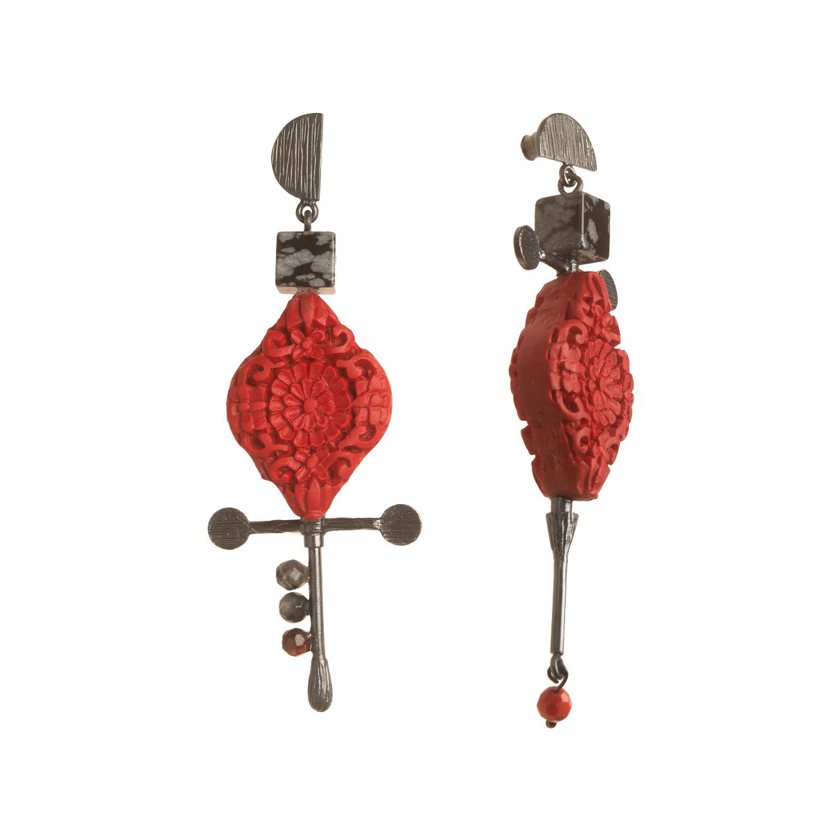Kamienie użyte w kolczykach: jaspis, onyks, granat, karneol, rzeźbiona ręcznie żywica naturalna.