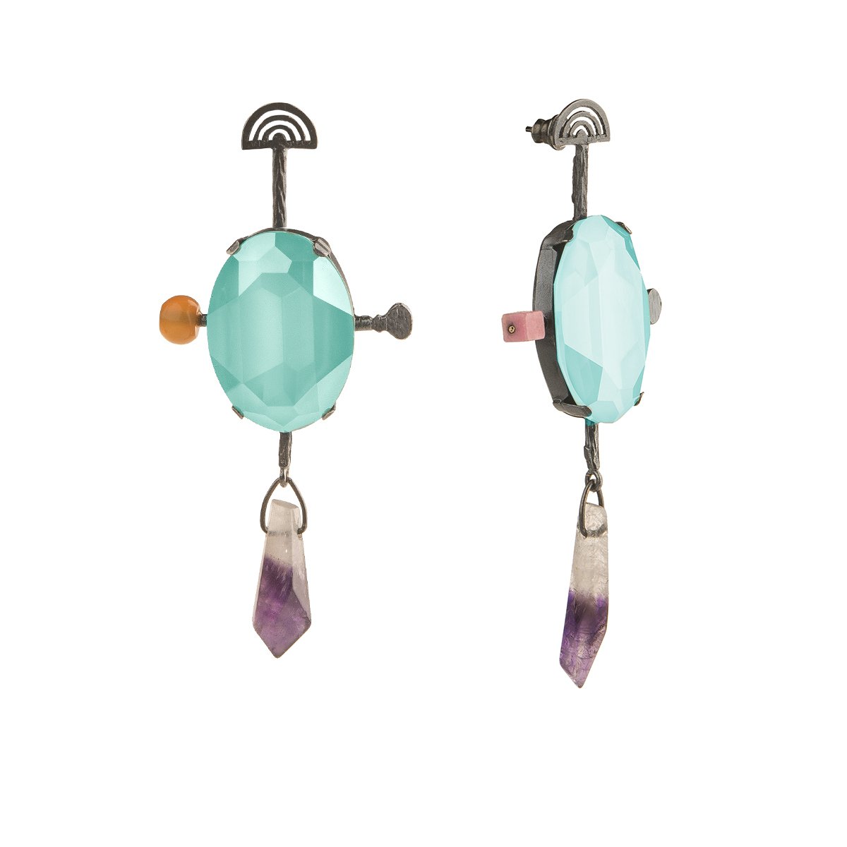 Kamienie użyte w kolczykach: ametyst kryształowy, karneol, jaspis różowy.