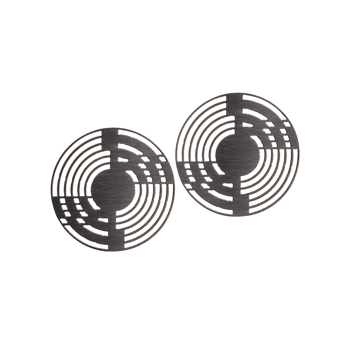 Ażurowe kolczyki na sztyfcie o geometrycznym wykroju zostały wykonane ręcznie z alpaki lub mosiądzu. Projekt syntetyzuje entuzjazm dla wybitnych artystycznych stylów minionych czasów oraz estetyki współczesnego przemysłu technologicznego. Na podobieństwo stylu art déco, łączy perfekcyjne wykonanie, uznanie dla eleganckiej sztuki, z projektowaniem na potrzeby współczesności. Minimalistyczna lecz wyrazista konstrukcja kolczyków sprawia, że będą one świetnym dodatkiem do monochromatycznych strojów o prostym kroju. Dzięki płaskiej formie są bardzo lekkie, co pozwala na komfortowe noszenie kolczyków przez długi czas.