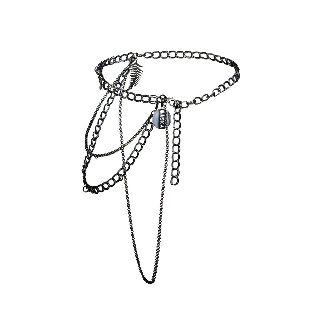 Body Chain to propozycja dla kobiet, które swoim wyglądem lubią stawiać deklaracje. Łańcuchy można nosić na wiele sposobów, coś co przed chwilą było naszyjnikiem, w kilka sekund może stać się masywną bransoletą, awangardowym paskiem albo potężną kolią. Można go owinąć wokół pasa, podkreślić nim talię lub przyczepić zawieszki z różnych kolekcji ORSKA. Body Chain został stworzony po to, by interpretować go w indywidualny sposób, by mógł dopasować się do każdego stylu i każdej sylwetki. Łańcuch z kolekcji Nefro został delikatnie przyozdobiony paprocią, która przełamuje charakterny, trochę rockowy styl. Idealny statement piece.