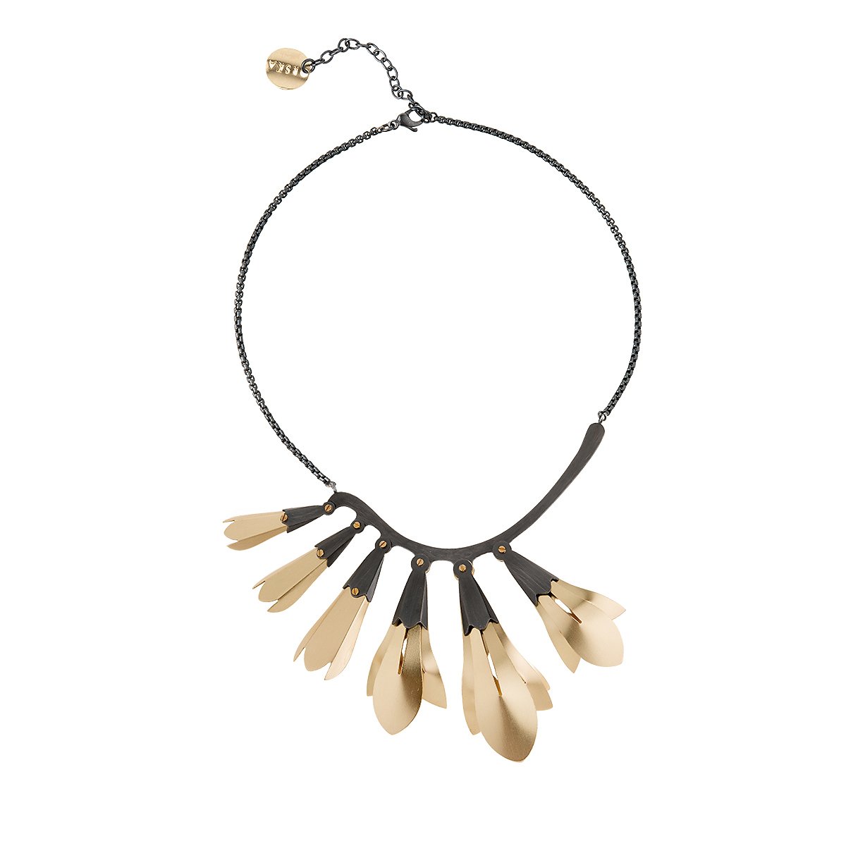 Anna Orska jako entuzjastka przyrody czerpie inspiracje z natury, wiernie odwzorowując jej piękno. Kolekcja Plantis jest hołdem złożonym doskonałości królestwa roślin. Naturalne formy i wzory przełożone na język współczesnego designu stworzyły oryginalną biżuterię przypominającą barwne origami. Artystyczny, krótki naszyjnik został ręcznie wykonany z mosiądzu. Delikatny łańcuszek ozdobiono aplikacją w kształcie gałązki frezji. Płatki kwiatu zostały wycięte laserowo z mosiądzu i skręcone ręcznie zegarmistrzowskimi śrubkami. Efektowna biżuteria będzie idealnym wyborem dla wielbicielek uroków matki natury, które nieustannie czerpią z niej siłę.