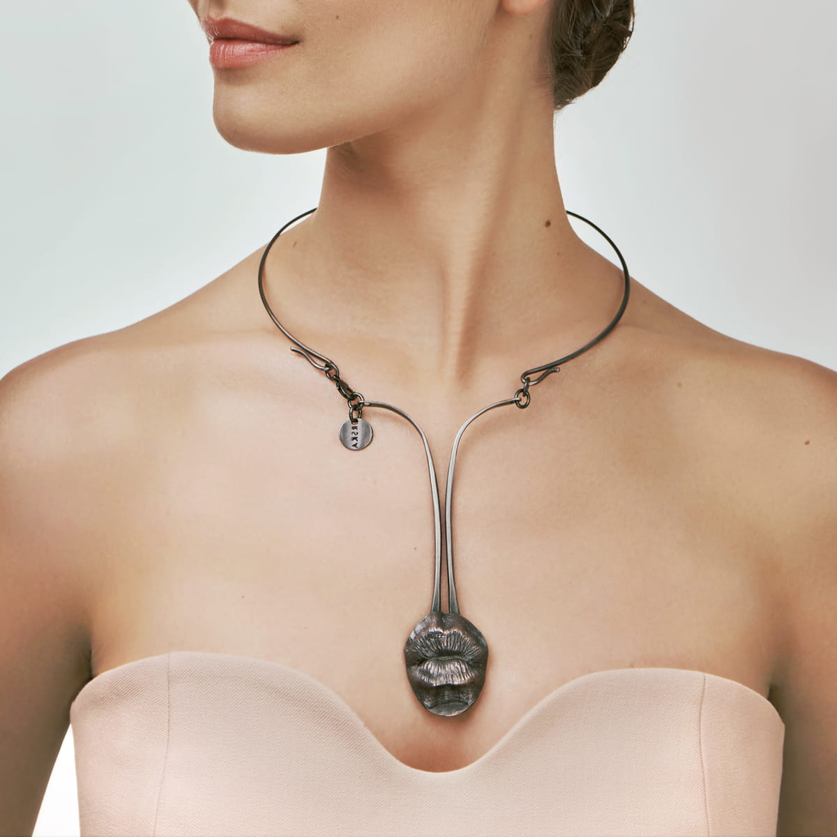 Biżuteria z kolekcji Body projektu Anny Orskiej wymaga otwartości, tak jak w rzeczywistości wymaga jej ciało, którego piękno tkwi w różnorodności. Inspiracja rzadko docenianą urodą jego bardzo funkcjonalnych fragmentów znalazła swoje ujście w hiperrealistycznych, mosiężnych formach odlanych z natury. Ręcznie wykonany naszyjnik z wisiorem w kształcie ust, doskonale ozdobi dekolt zwolenników kosztowania kulinarnego dobrodziejstwa z wszystkich zakątków świata. Piękno płynące z różnorodności wyeksponowane w bardzo artystycznym, jubilerskim projekcie czyni z niego ozdobę wspierającą akceptację ludzkiej fizyczności.