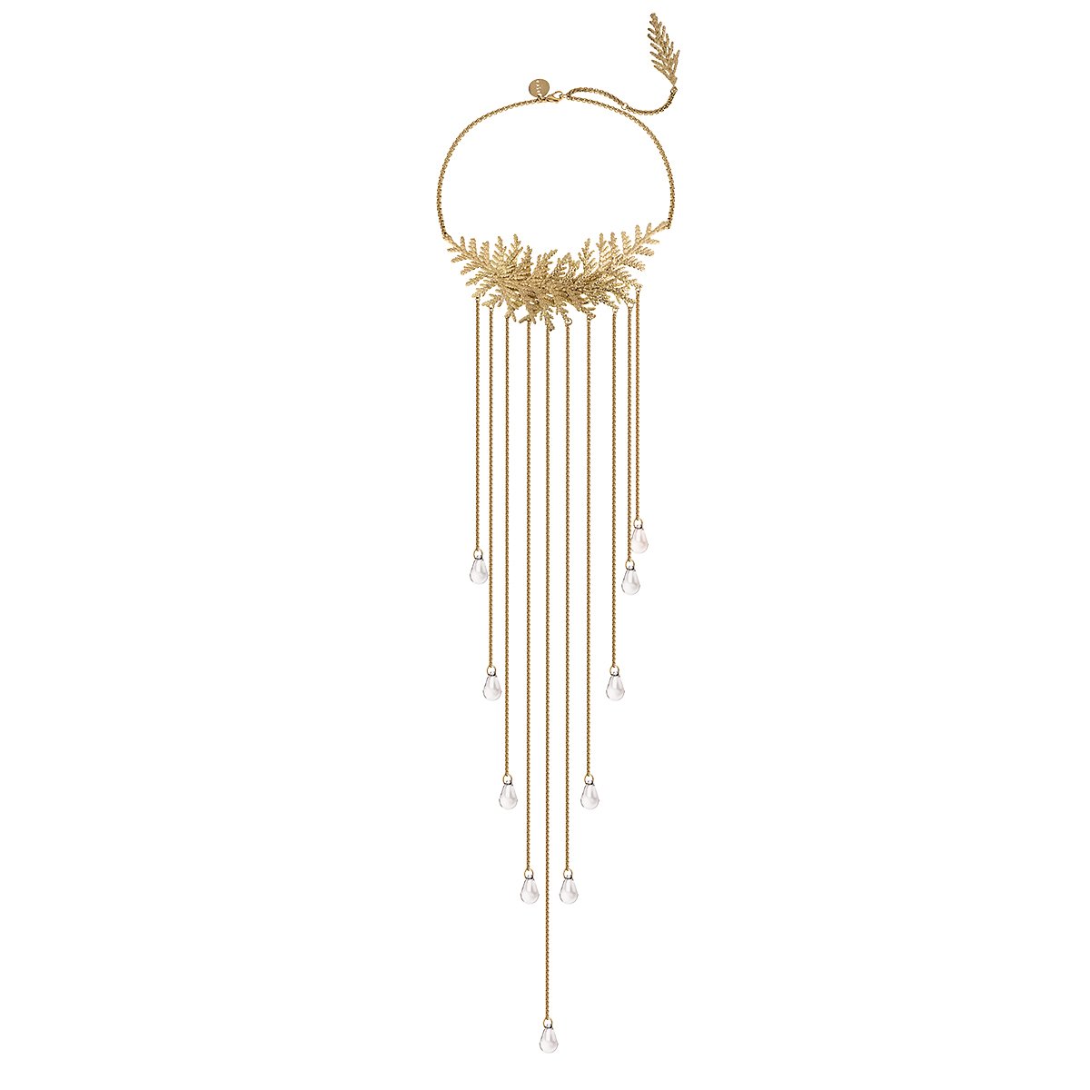 Codzienna, bliska obecność żywotnika zachodniego i jego nieoczywista doskonałość zainspirowały Annę Orską do stworzenia kolekcji Thuja, która dzięki subtelnemu designowi dyskretnie zdobi ciało. Delikatne pędy tui, zatopione w mosiądzu lub spatynowane srebrem mienią się niczym otulone porannym słońcem. Całość zdobią liczne, delikatne łańcuszki zakończone kryształami Swarovski Elements w kształcie kropli porannej rosy. Artystyczny, ręcznie wykonany naszyjnik zamyka w sobie zapach lasu, świeżą rosę, delikatne promienie słońca - po prostu piękno chwili. Kobieca biżuteria w romantycznym stylu będzie idealnym wyborem dla osób kochających naturę, które nieustannie czerpią z niej siłę i radość.