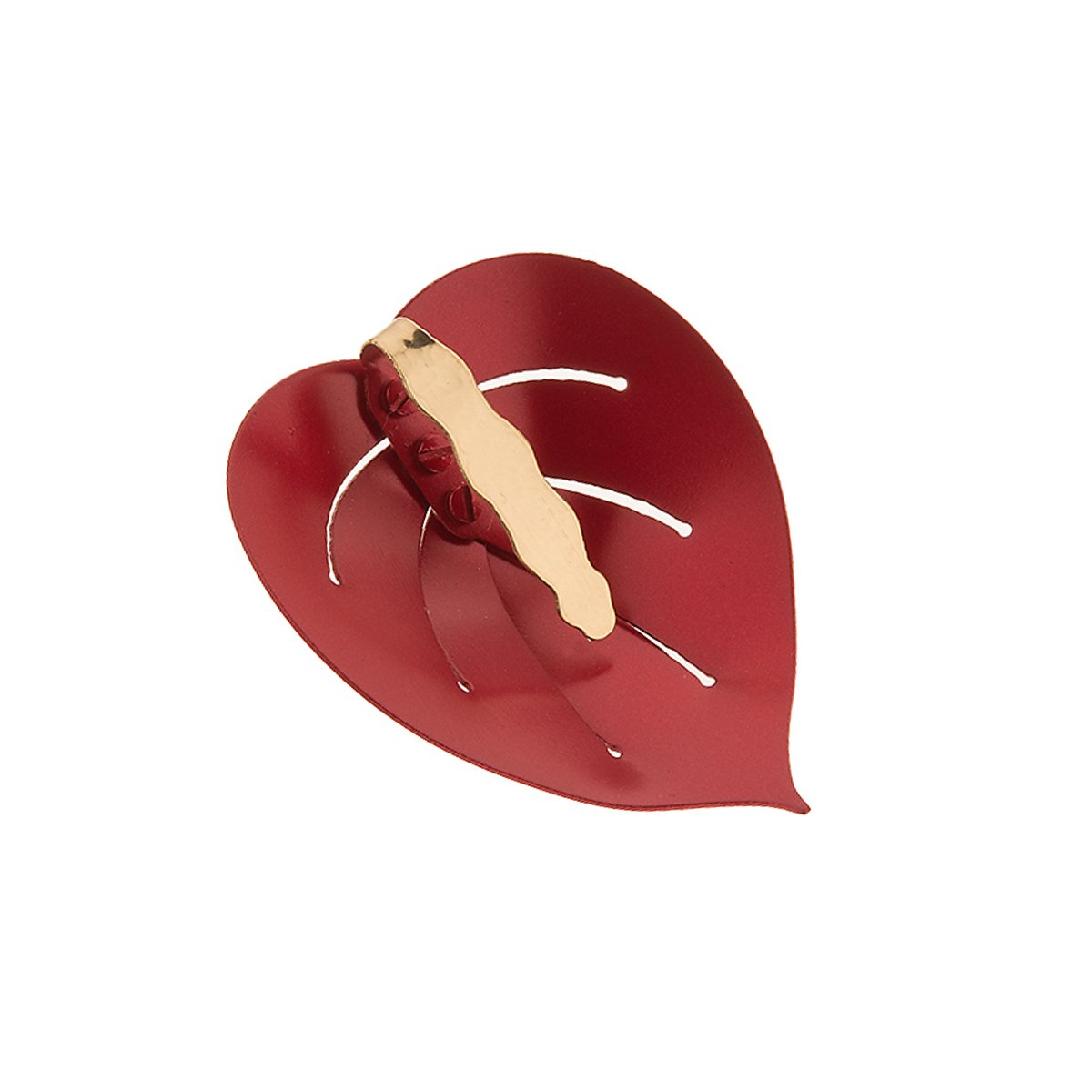 Anna Orska jako entuzjastka przyrody czerpie inspiracje z natury, wiernie odwzorowując jej piękno. Kolekcja Plantis jest hołdem złożonym doskonałości królestwa roślin. Naturalne formy i wzory przełożone na język współczesnego designu stworzyły oryginalną biżuterię przypominającą barwne origami. Artystyczny pin został wykonany ręcznie z mosiądzu. Egzotyczna biżuteria w formie kwiatu anturium oddaje temperament żywiołowych kobiet z wyobraźnią. Okazały pin efektownie ozdobi zarówno miękki sweter jaki i klasyczną marynarkę.